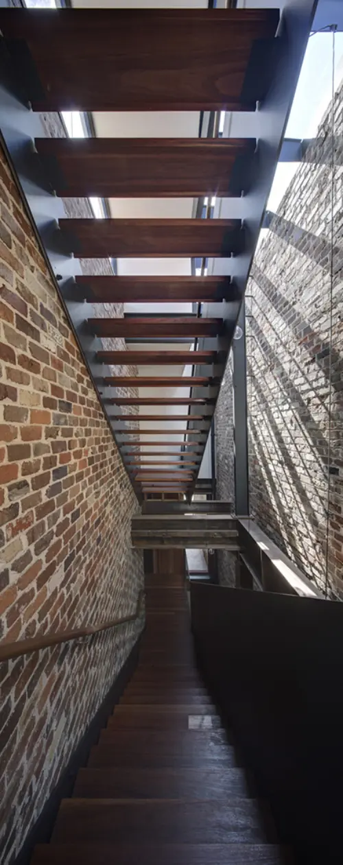 Within the original warehouse framework are dramatic volumes of space like the 12-metre void carved through four levels, with a skylit staircase beside