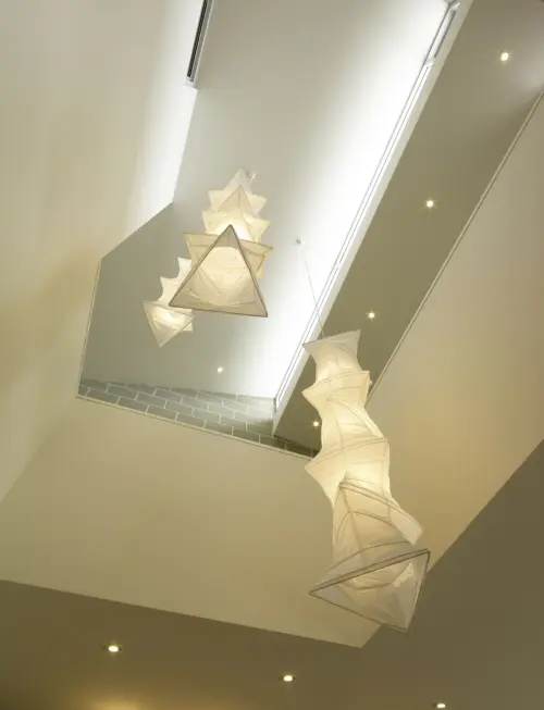 Sustainability is built-in – from the insulated concrete block walls harnessing thermal mass in winter and screening summer’s heat, to windows strategically placed for cross-ventilation and a sawtooth roof that draws natural light down through a central two-storey void.