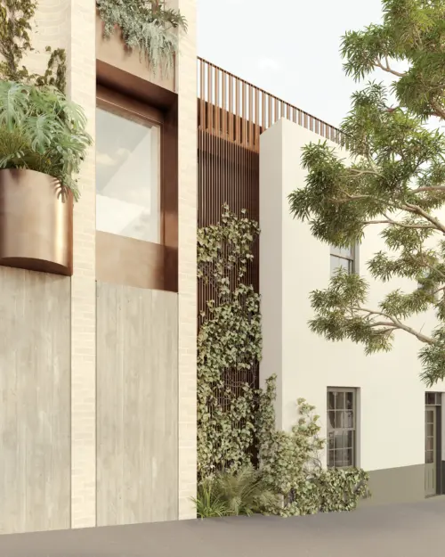 The home will soon feature a revitalised contemporary addition at the rear, with bronze and brick pillars detailed with lush, cascading planting.