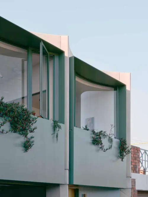 Rather than treating the laneway as secondary, the project approaches it as shared urban ground. Curved glazing and integrated planter boxes soften what was once a hard edge, bringing greenery and colour to a space typically defined by service doors and bins. Overlooking from the studio introduces passive surveillance, lending a sense of safety and presence.