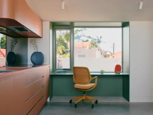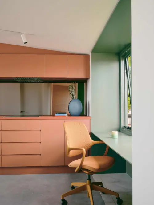 Located in Sydney’s Inner West, Denj Lane introduces a studio above an existing garage, created for a young family seeking flexible space for work, guests and the future. Compact in footprint yet complete in function, the studio contains a bedroom, bathroom, kitchen and living area.
