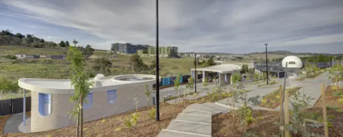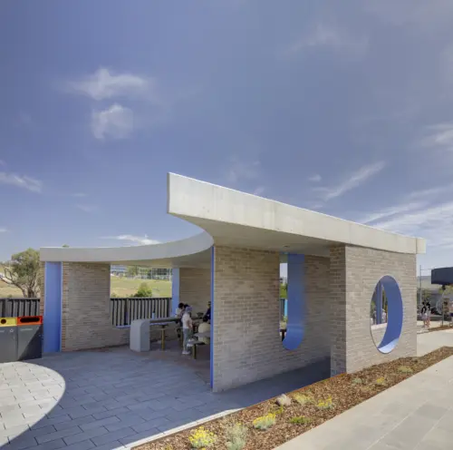 The public toilets have been produced in collaboration with Capital Estate Developments and Spiire, as part of a recreational nucleus for Northwest Canberra's emerging suburb, Denman Prospect.