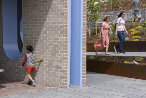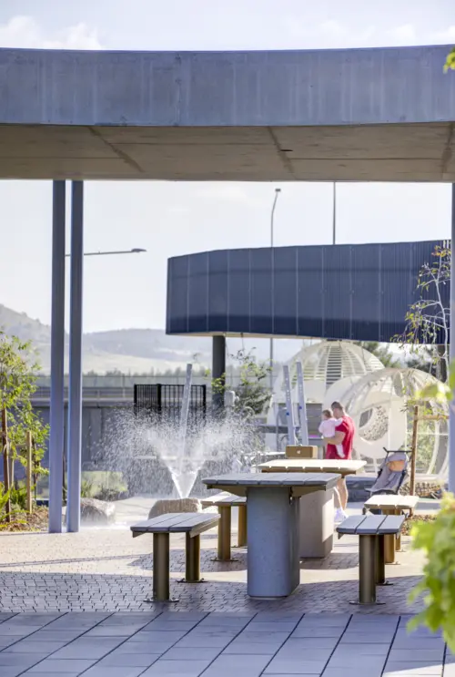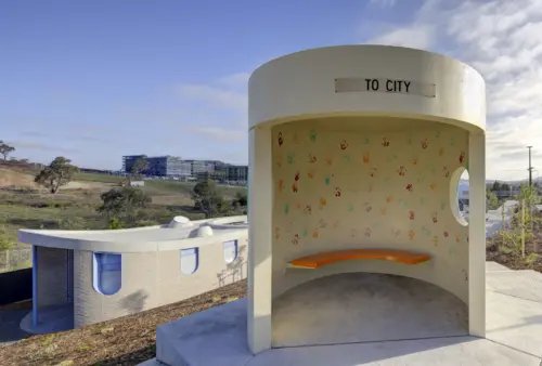 Nestled between Mount Stromlo Observatory and an emblematic green Clem Cumming’s bus stop; the bespoke play structures and charming amenities embed cultural and historical design references.