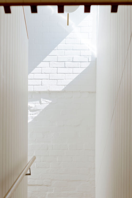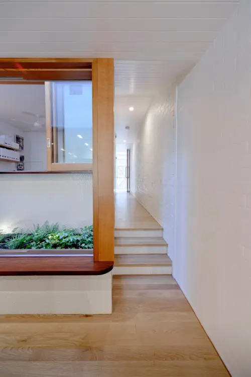 bench seat, and breathing space to the new kitchen. A stairwell bathed in