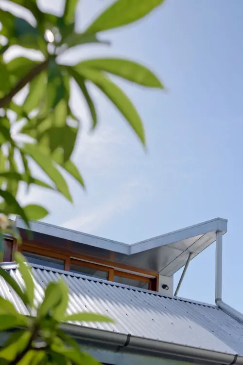 To mark the transition between the compact cottage and the new addition, a