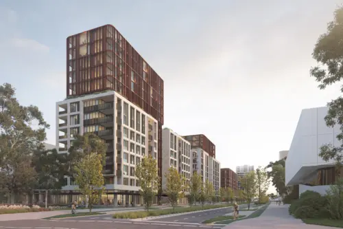 Designed in collaboration with MAKO Architecture, this Design Excellence Competition proposal incorporates one, two, and three bedroom apartments across three buildings in the inner-Sydney suburb of Green Square.