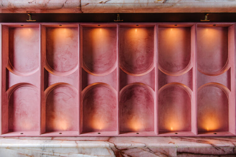 A freestanding steel staircase and elevator connect all three dining levels and a new underground bar that has been carved into the sandstone basement. The exterior restoration of the sandstone walls included the reinstatement of its original crowning glory – a giant golden ram atop the northern parapet.