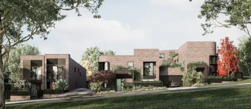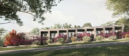 Inside, the open-plan ground floors with a central kitchen allow tenants flexibility in furnishing, while integrated landscaping includes a mix of shared and private garden spaces.