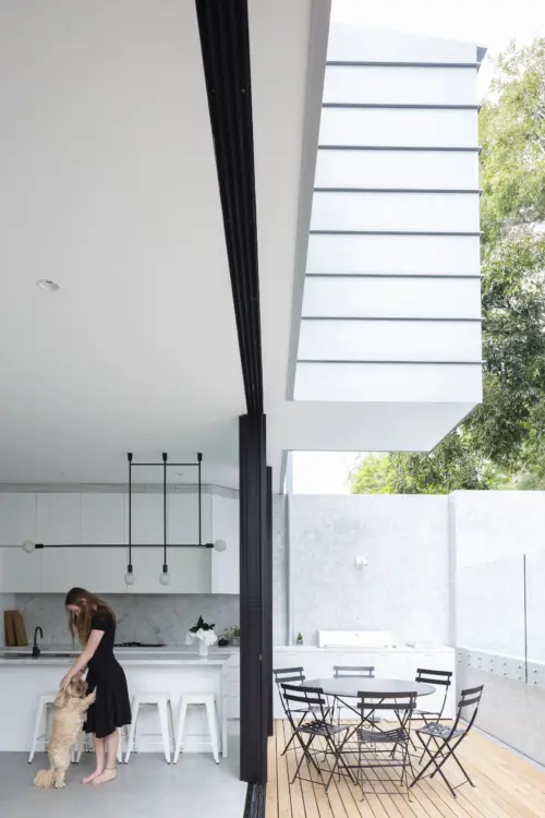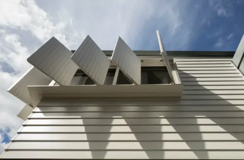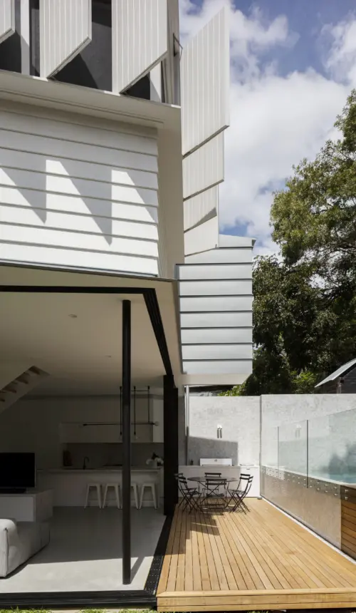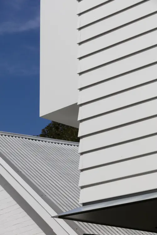 from the heritage terrace, while its wide weatherboard cladding and classic