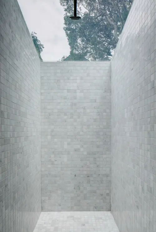 to the living domain is sequenced with crafted details of timber, marble, and a