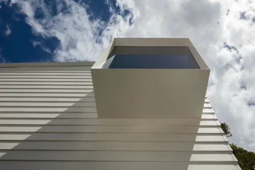 steel box window seat peeks out from behind the terrace for a view of