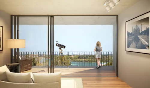 On a corner site bounded by a major road in Sydney’s west, this mixed-use development forms a new urban landmark along the Parramatta River. Designed in collaboration with Architectus as part of a Design Excellence Competition invitation, the scheme reads as an unfolding form with clearly articulated structures from base to top.