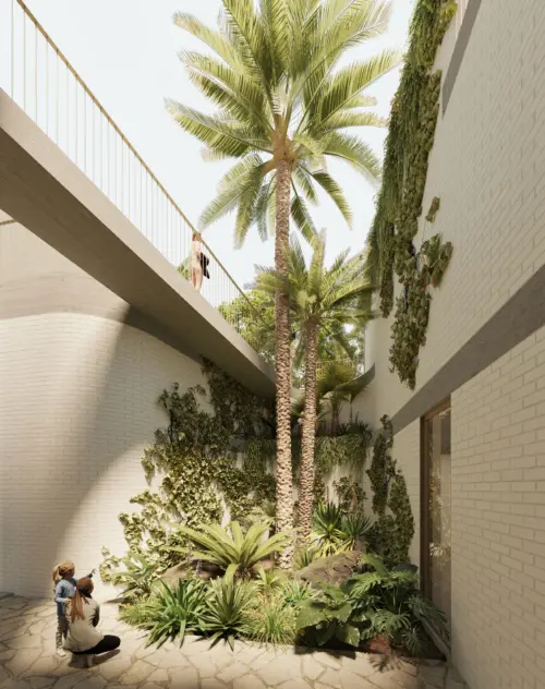 The two most generous of these vertical spaces are courtyards. Facing north and playing a part in the entry sequence, the first maximises sunlight on the front façade. The second is centrally located, protected from the unpredictable coastal elements. At the base of the home, the ‘tunnel portal’ holds a cavernous entertaining space that links the home with the pool, the neighbouring park, and the beach a few steps beyond.