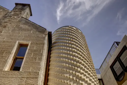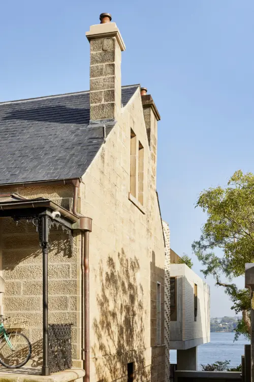 One of the first houses constructed on its street, the four-room cottage was built in 1881, with sandstone quarried from the site. Extensions were added throughout the 20th century, with no cohesion from one to the next. These alterations were removed and a new harbour-facing extension integrated, cascading over four distinct levels, cut deep into the sandstone bedrock. Linking old with new is a light-filled cylindrical staircase, encased in artfully tessellated white bricks.