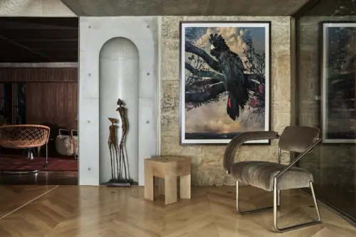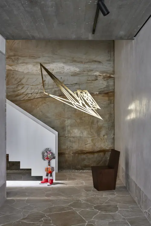 On a steep water-front site, this late Victorian Sydney cottage gets a bold new identity, highlighting its sandstone heritage and connection to the harbour. Renamed Wurrungwuri (‘the side of the river’) the house is now a tectonic experience of light, shade and spatial ambiguity.